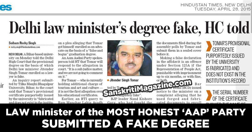 The affidavit came after HC issued notice to the university while hearing a petition alleging Tomar should be removed as minister as he enrolled as an advocate using a “false and bogus” graduation degree.