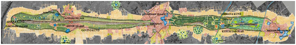 This article focuses on the various pilgrimage places that are situated alongside the circumambulation pathway of Shri Giriraj. In every practical sense, it is not possible to numerate and describe all these places in detail. Therefore, we shall emphasise on the major spots and highlight them in order. A landscape figure of the hills with the alongside pathway can be shown as follows: